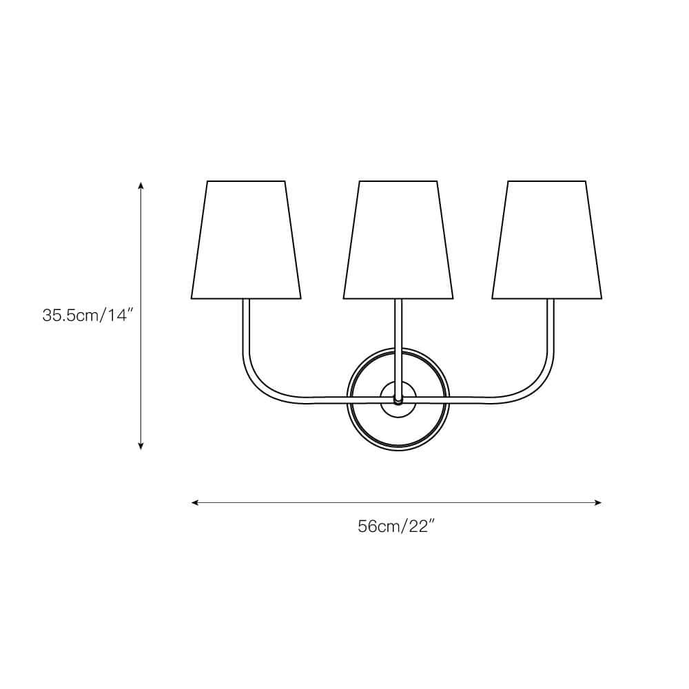 3 heads: D 56cm x W 28cm x H 35.5cm / ∅ 22″ x W 11″ x H 14″