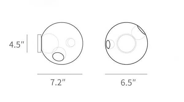 The 28S Wall Sconce redefines lighting with its unique blown glass design. Each slightly distorted sphere features satellite-like shapes and an opaque milk glass diffuser, housing an LED or low-voltage xenon lamp. A stunning blend of innovation and artistry for modern interiors.