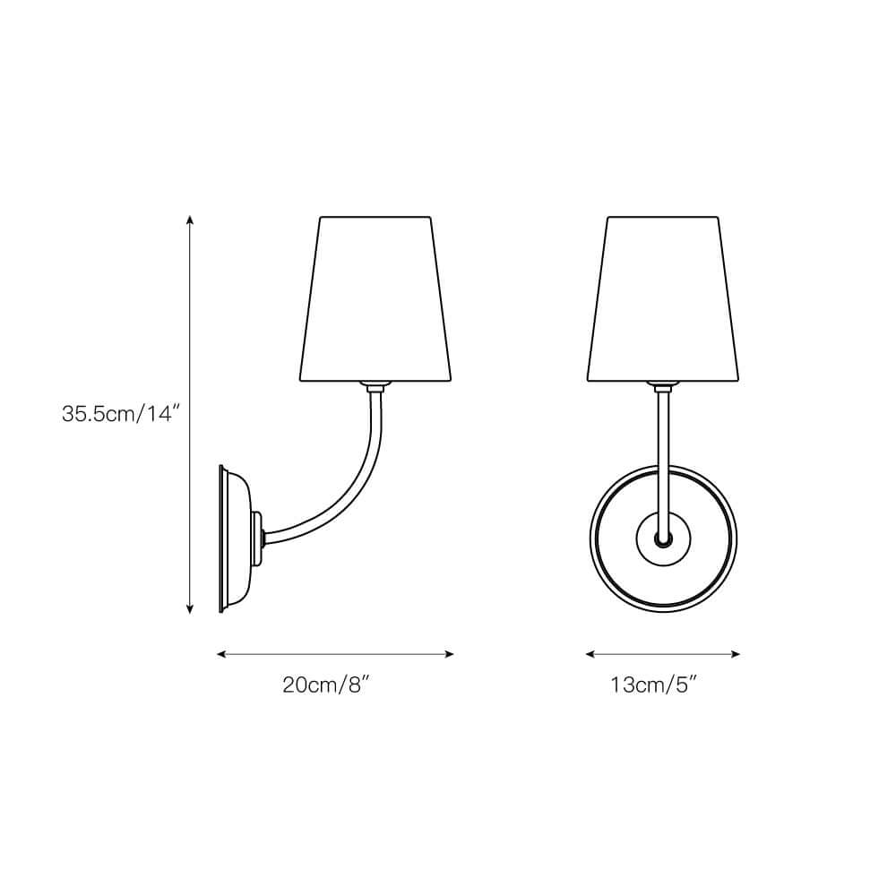 1 head: D 13cm x W 20cm x H 35.5cm / ∅ 5″ x W 8″ x H 14″