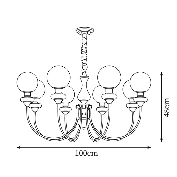 Illuminate your space with the Retro Monique Chandelier, a perfect blend of simplicity and elegance. Crafted with hand-blown glass lampshades that diffuse warm light and a solid white wax wood body for strength and natural beauty. This timeless piece brings both craftsmanship and style to any room.